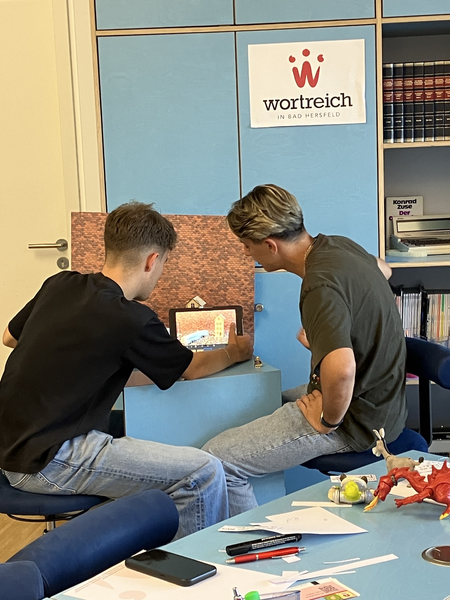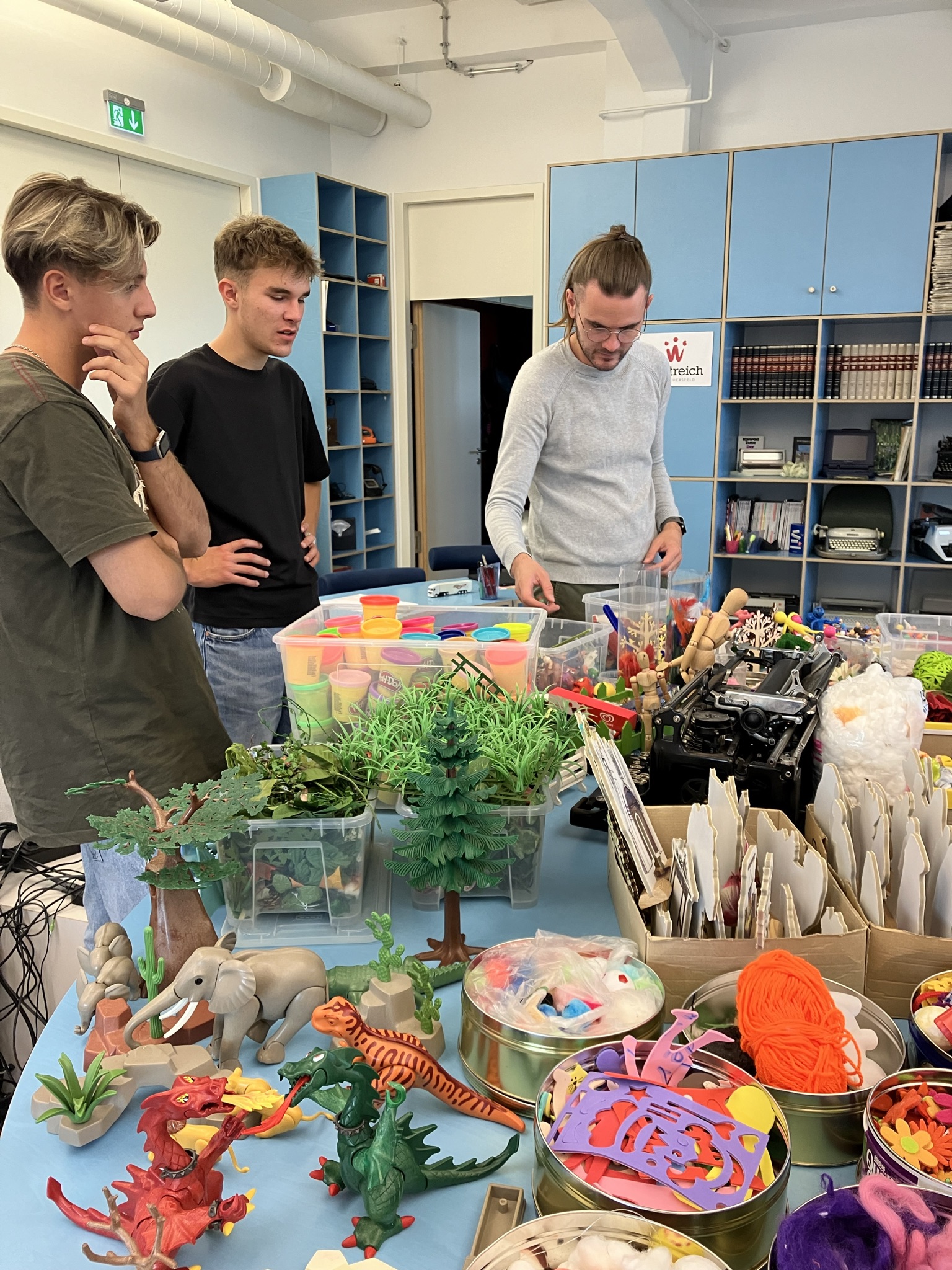 Bei aller Digitalisierung ist jedoch eins ganz sicher: Ein digitales Meeting kann ein Live-Treffen nicht ersetzen. Deshalb hat sich die Projektgruppe Mitte September zu zwei Tagen Workshop in Präsenz getroffen. Am ersten Tag stand das persönliche Kennenlernen im Vordergrund. Bei einem Stop-Motion-Workshop betrachteten die Teilnehmenden das Thema Papier eher spielerisch und losgelöst von schnöden Dokumenten. In Zweierteams kreierten sie mit viel Bastelpapier und Kreativität kurze Videoclips.